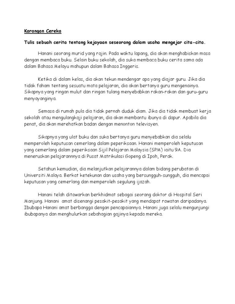 KARANGAN Cara penulisan karangan cereka. Contoh Penulisan Karangan STPM. Malam itu keadaan di luar rumah sungguh gelap dan hanya diterangi oleh sebatang lampujalan raya yang berhampiran dengan rumahku.