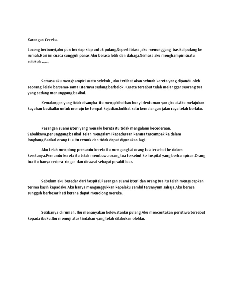 . Karangan BM PT3 yang terbaik. Contoh Karangan Cereka Akses Asia - Tech Support Manuals. Suatu hari ketika kamu tinggal sendirian di rumah kamu telah dikejutkan oleh suara riuh-rendah.