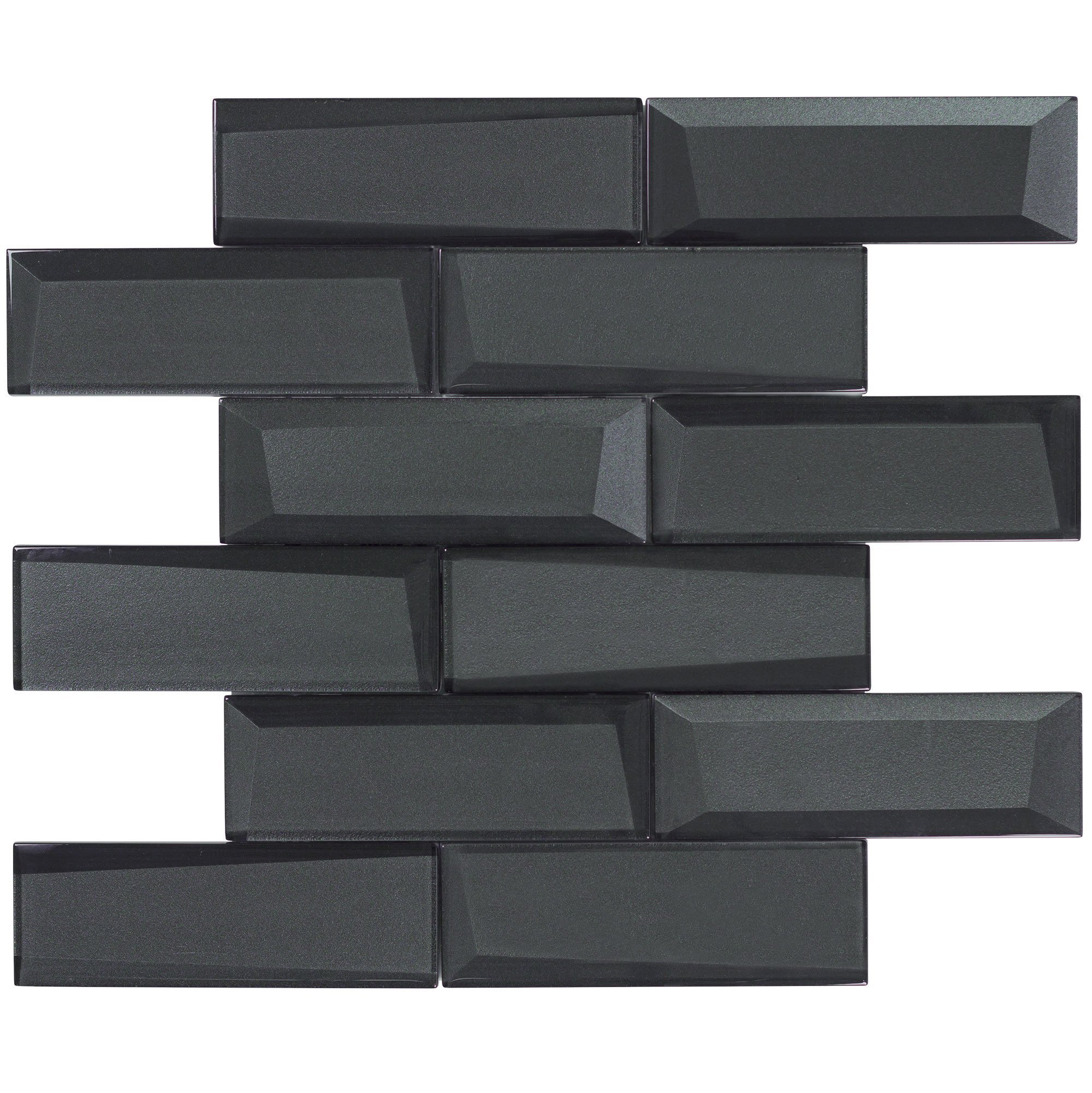 Amazon Com Modern 2x6 Faceted Beveled Subway Black Glossy Metallic Glass Mosaic Tile Kitchen Backsplash Bathroom Mto0157 Home Kitchen